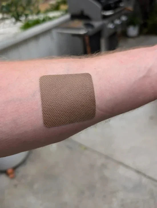 Aplica en una zona limpia y seca (muñeca, brazo, pecho, muslo).